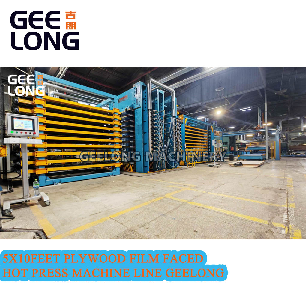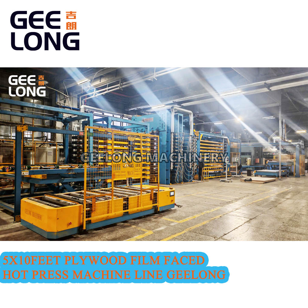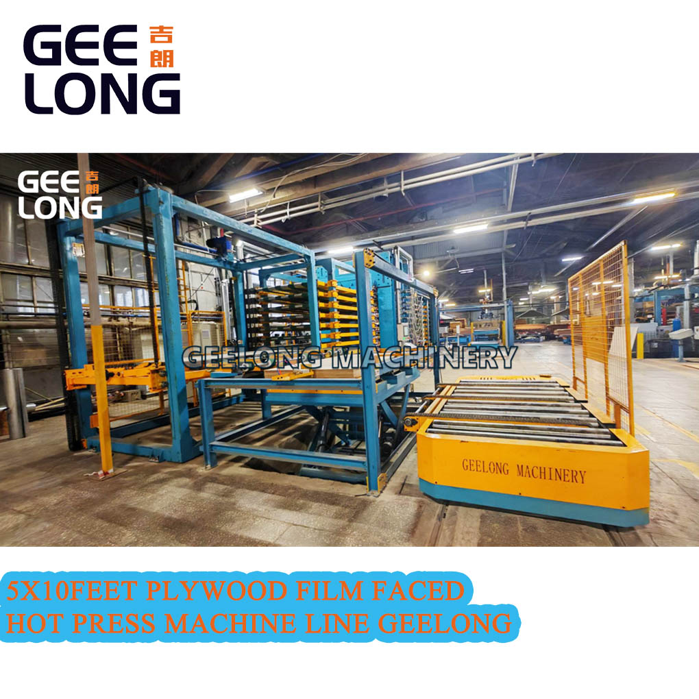 Automatic 5x10feet 4×8feet plywood film faced hot press machine, this line can do 4x8feet film faced plywood also can do 5x10feet film faced plywood, this line hot press machine is vertical model, not transverse model, this film faced plywood hot press machine includes as below: